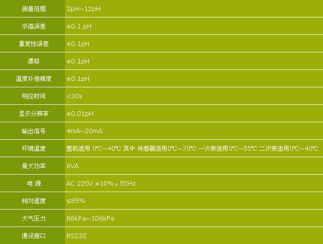 儀器由一次表和二次表組成。一次表由電極、前置放大器和支架組成,二次表完成 pH 顯示、信號(hào)輸出和報(bào)警輸出。前置放大器采用隔離放大技術(shù),可以實(shí)現(xiàn)遠(yuǎn)距離傳輸,抗干擾能力強(qiáng)。采用液晶顯示,讀數(shù)直觀清晰。儀器具有上下限報(bào)警電路,可通過(guò)液晶顯示板直讀上下限值,且上下限在測(cè)量范圍內(nèi)連續(xù)可調(diào),并可通過(guò)外接設(shè)- 備控制裝置進(jìn)行酸堿自動(dòng)調(diào)節(jié)。